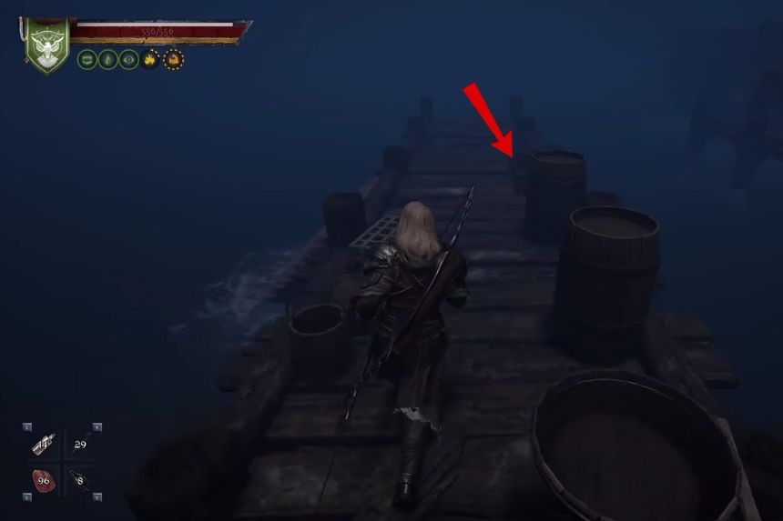 Uscite dalla taverna e dirigetevi verso il porto. Scendi nell’area del porto e cerca la pescheria. La prima scorta è fuori dal negozio.