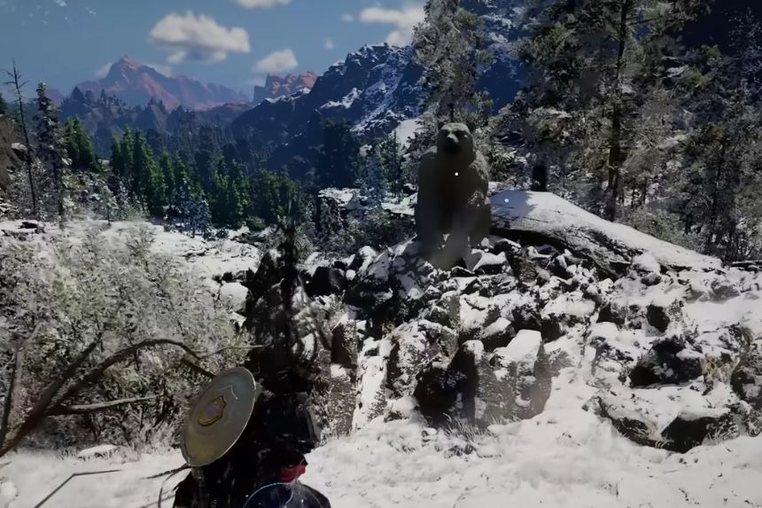 Quando arriverai vedrai l’orso bianco, che solitamente è accompagnato da alcuni cuccioli. Non appena ti avvicinerai, l’orso attaccherà subito, quindi preparati a combatterlo. Per prima cosa uccidi l’orso e poi assicurati di scuoiarlo. Questo è importante perché ti darà gli artigli dell’orso bianco, necessari per ottenere la cavalcatura.