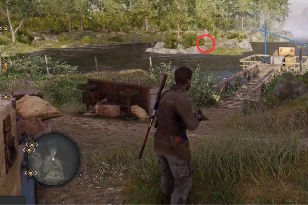 Troverai lo Gnomo dall’altra parte del fiume su una piccola isola. Dovrai sparare allo Gnomo per acquisirlo.