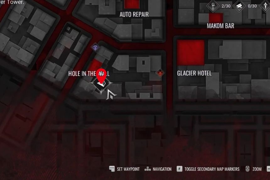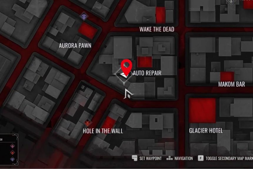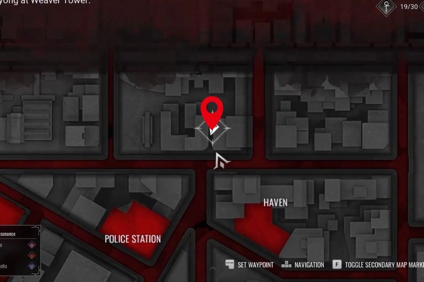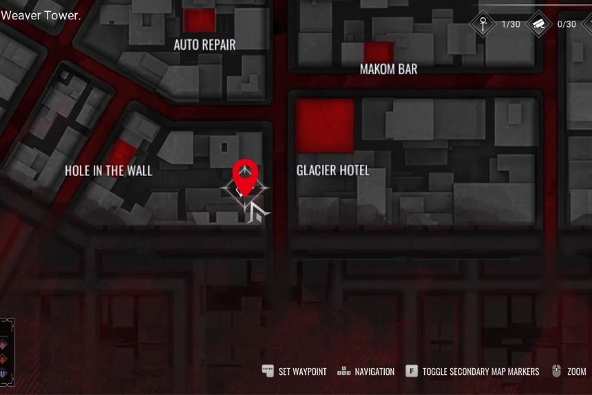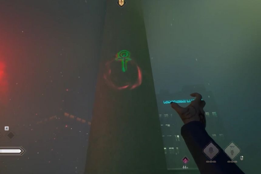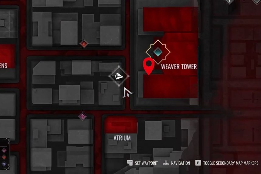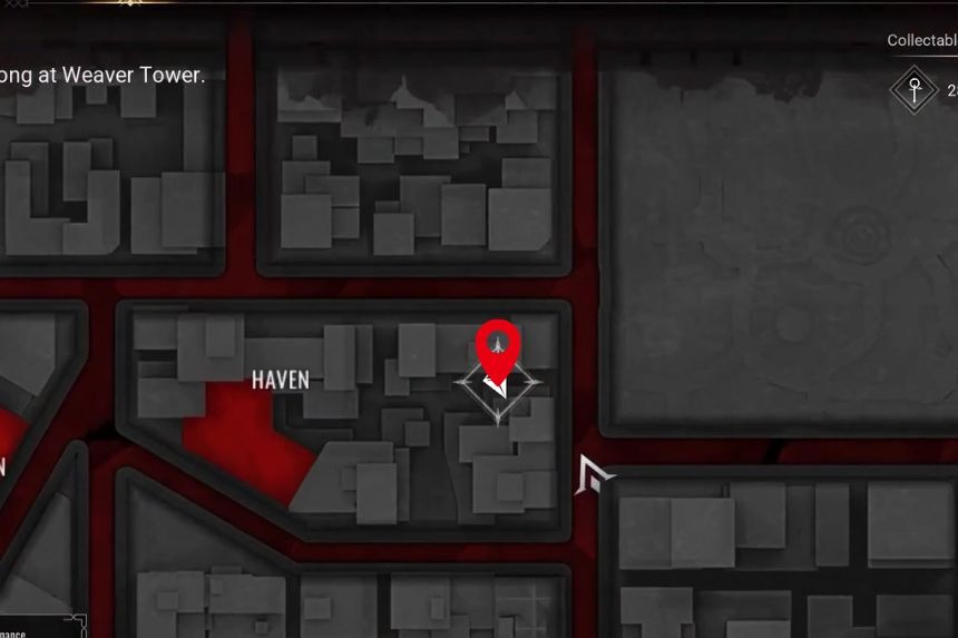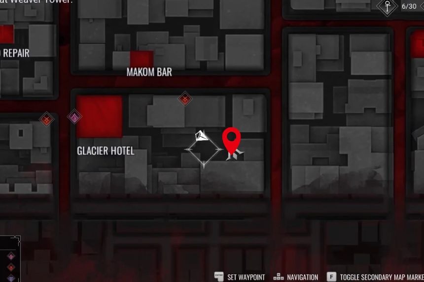 Controlla la guglia della torre nell’isolato a ovest di Aurora Pawn. Devi solo salire sull’edificio per individuare la torre di fronte a te.