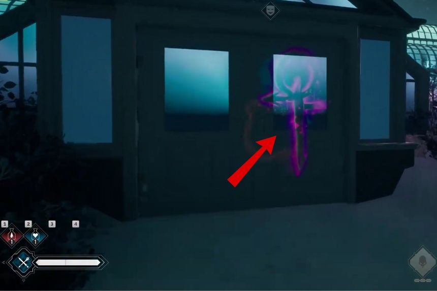 Questo è in alto su un muro nei vicoli a ovest dell’Atrio. Guarda in alto mentre esplori quel blocco. Lo troverai vicino ad alcune finestre.