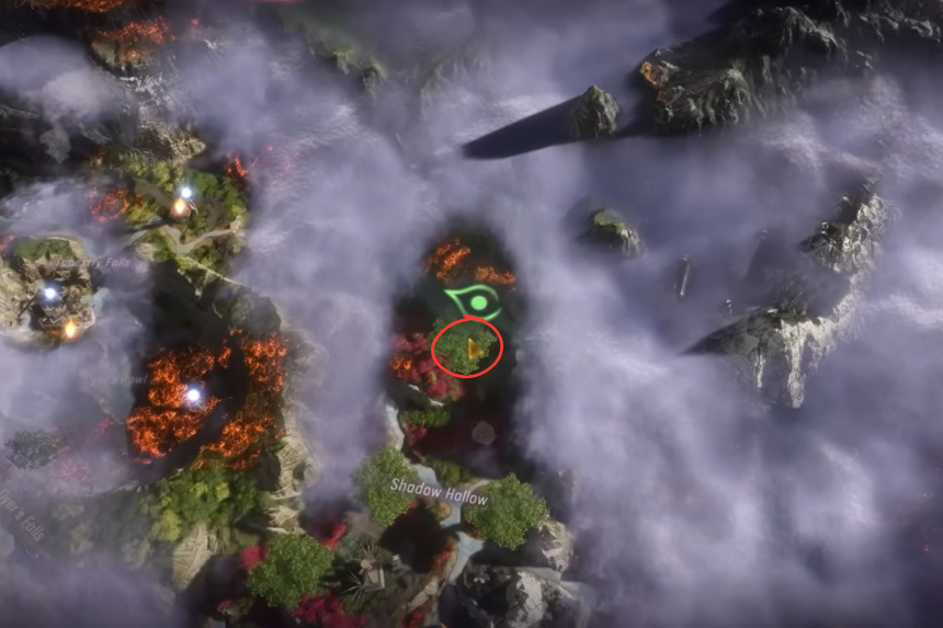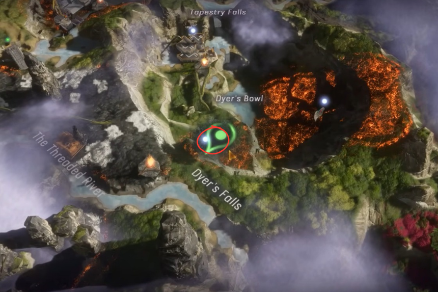 Questo potrebbe essere trovato tra Spinner’s Circle e Rising Spires. Vai alla posizione mostrata nell’immagine della mappa sopra che è abbastanza vicina a Nangi’s Longing. Una volta raggiunta l’area, vedrai i fiori tana’ring intorno a te con la pianta Zeykoma al centro. Avvicinati, interagisci e ottieni il frutto per te stesso.