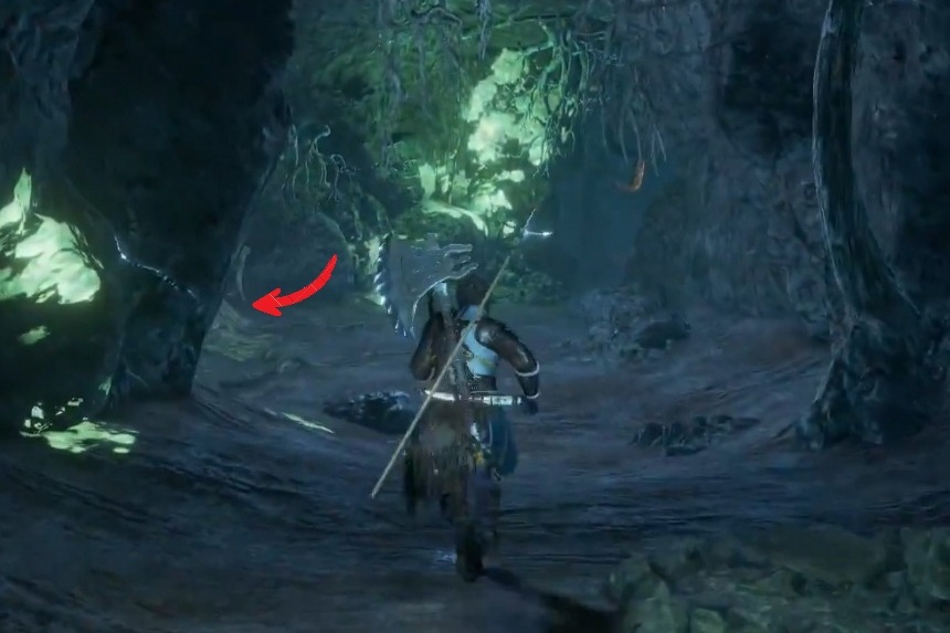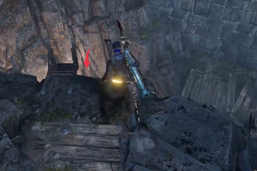 Per la prima sorgente termale, inizia dal secondo santuario, sali la scala posizionata proprio accanto ad esso. In cima vedrai due strette passerelle di pietra contrassegnate da cristalli gialli. Prendi il sentiero a sinistra e seguilo fino a raggiungere un nemico con il braccio a razzo in piedi con la schiena girata. In questo punto, cerca un muro nascosto. La sorgente termale è nascosta dietro di essa.