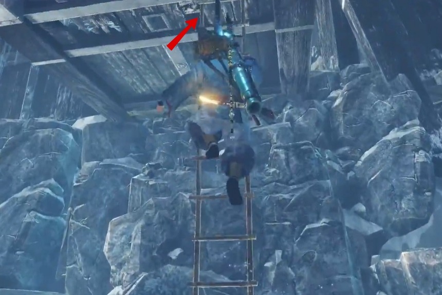Dal secondo santuario, tira la leva per ruotare i ponti. Quindi sali in cima, entra nella torre e muoviti lateralmente finché non puoi saltare fuori da una porta sul ponte centrale. Da lì, vai a sinistra per raggiungere la sorgente termale.