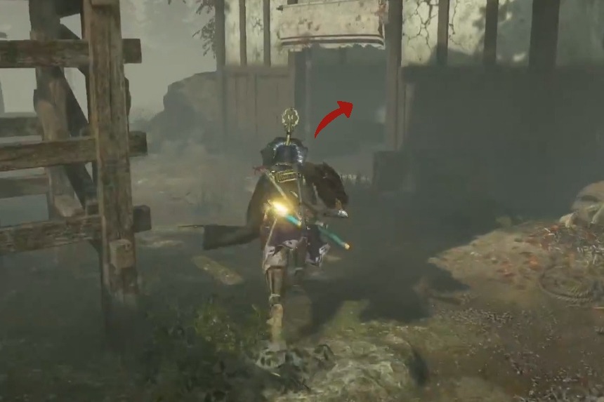 Dopo aver raggiunto il terzo santuario e sconfitto Hachisuka Koroku, scendi il pendio in un campo aperto dove uno yokai gigante attacca da lontano. Circa a metà di quest’area, una porta sulla destra è sorvegliata da un Guerriero Magatsu nella nebbia. Sconfiggerlo ti ricompensa con la chiave arrugginita, che apre la porta. All’interno, prosegui dritto fino a raggiungere il tetto, quindi scendi attraverso l’apertura per trovare la sorgente termale e un grande cristallo giallo.