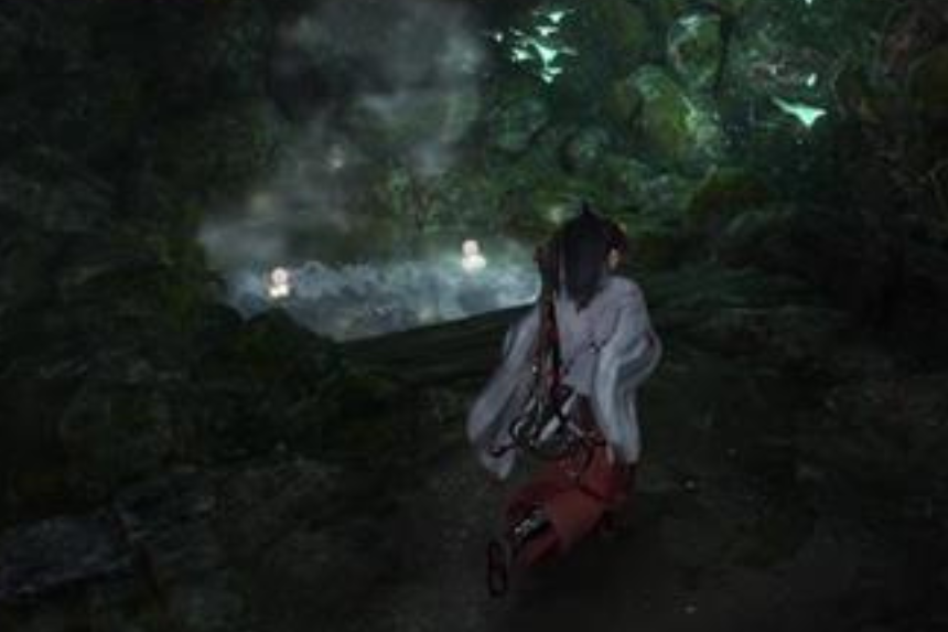 Dopo aver superato il secondo santuario, segui lo stretto sentiero lungo la scogliera orientale. Raggiungerai il retro di una cabina chiusa a chiave e un’area nebbiosa yokai dove appare uno Yoki. Oltre la nebbia, scendi la scala per trovare la sorgente termale che ti aspetta in fondo.