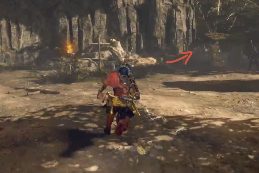 Una volta raggiunto il terzo santuario del Regno Oscuro, troverai un Oni con un occhio solo, da lì dirigiti a ovest. Dopo aver sconfitto alcuni soldati del clan Imagawa, incontrerai un Nurikabe Yokai alla tua sinistra accanto a un soldato seduto. Qui è dove troverai la sorgente termale nascosta.