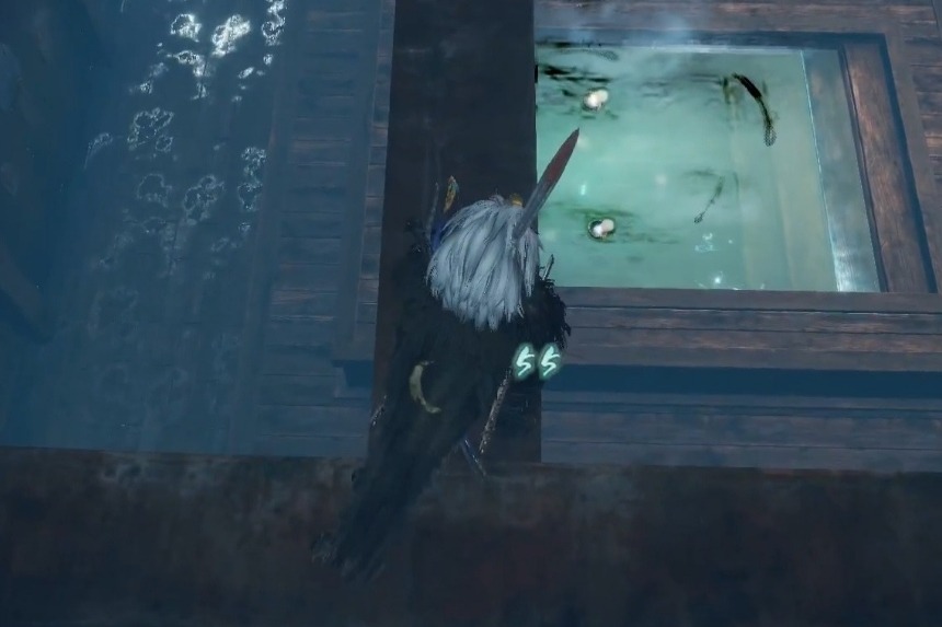 Dalla posizione di partenza seguire il sentiero in discesa e prendere la salita a destra. Poco prima di raggiungere la cima, guarda a sinistra per individuare un muro di Nurikabe. Usare il gesto Salto all’indietro ti permetterà di passare senza impegnarlo in combattimento. La sorgente termale si trova nella stanza oltre lo yokai.