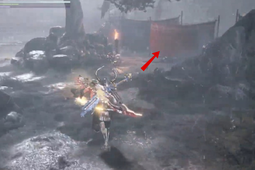 Al primo piano della Grande Forgia Ardente, vicino all’obiettivo della missione, c’è un muro nascosto con un passaggio dietro di esso. Usando un gesto di provocazione sul muro di Nurikabe, Yokai farà apparire il muro nascosto e consentirà l’accesso a un percorso che ti porterà direttamente alla sorgente termale.