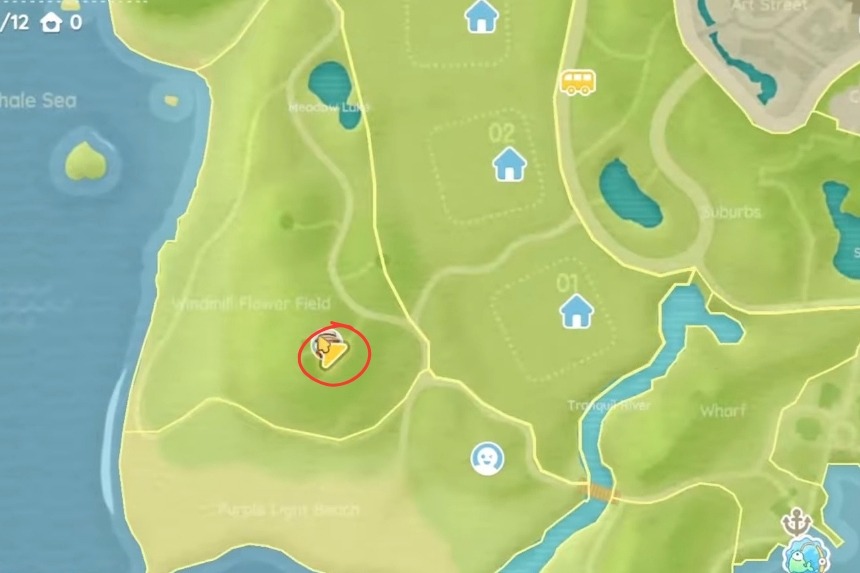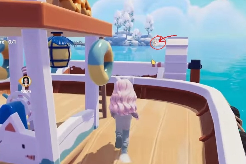 Dovrete saltare sulla statua della balena, che si trova esattamente al centro della mappa, per recuperare la bolla dei Mocassini Monocolore.