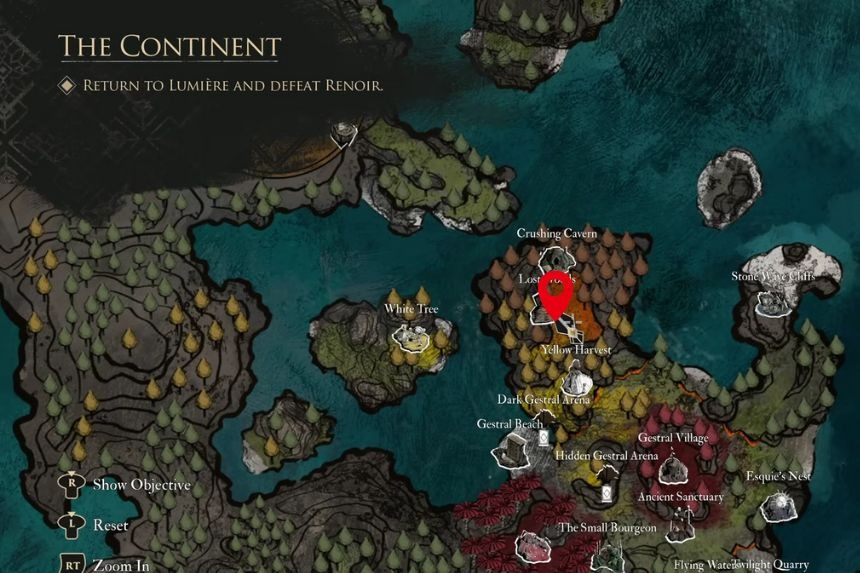 Per raggiungere la serra di Aline, devi prima progredire nella storia e reclutare Esquie. Successivamente, ripulisci l’area di Yellow Harvest per sbloccare un’uscita alternativa. Questo percorso ti porta verso Lost Woods, dove avrai bisogno dell’abilità di Esquie di distruggere gli ostacoli rocciosi per entrare nella Glasshouse e trovare il disco.