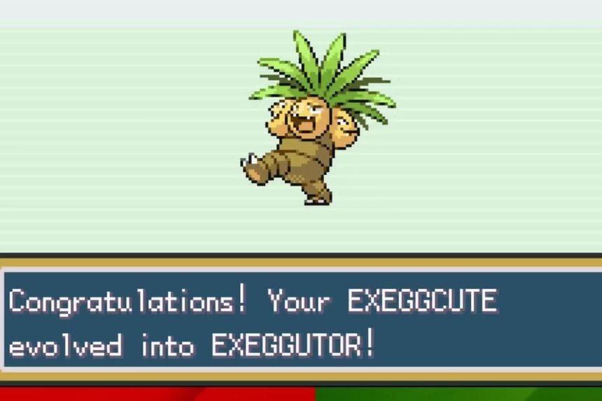 Exeggcute si evolve in Exeggutor quando esposto ad una Pietrafoglia. Ha forti statistiche speciali e può imparare sia mosse di tipo Erba che di tipo Psico.
