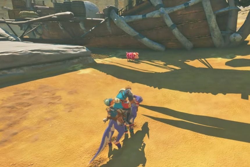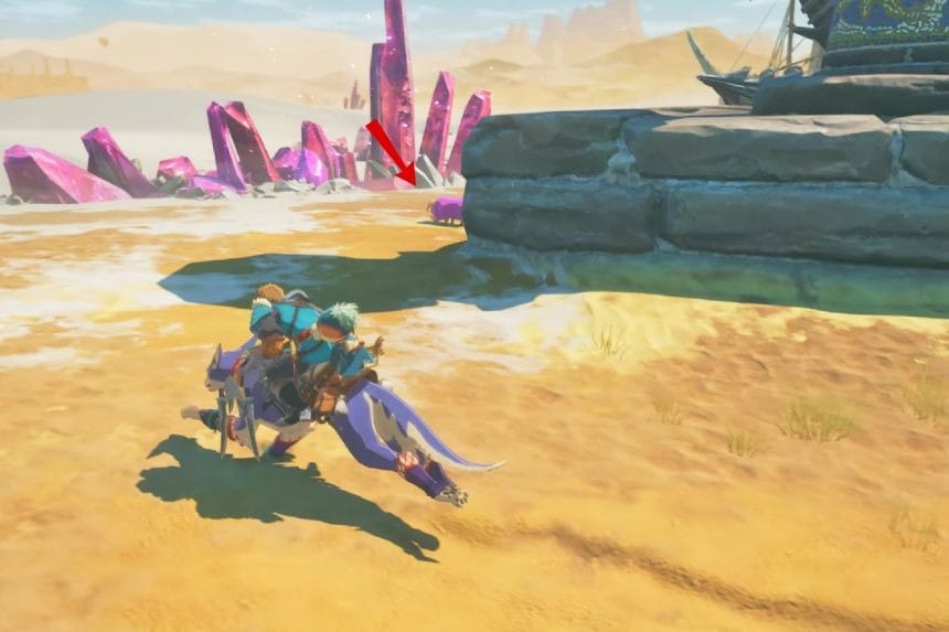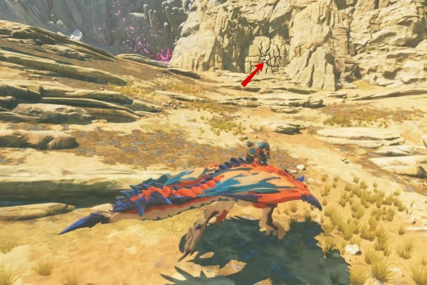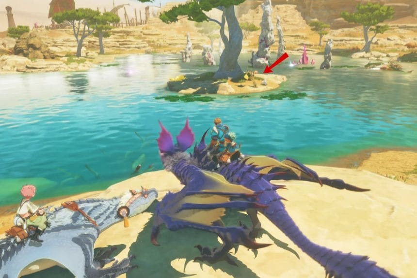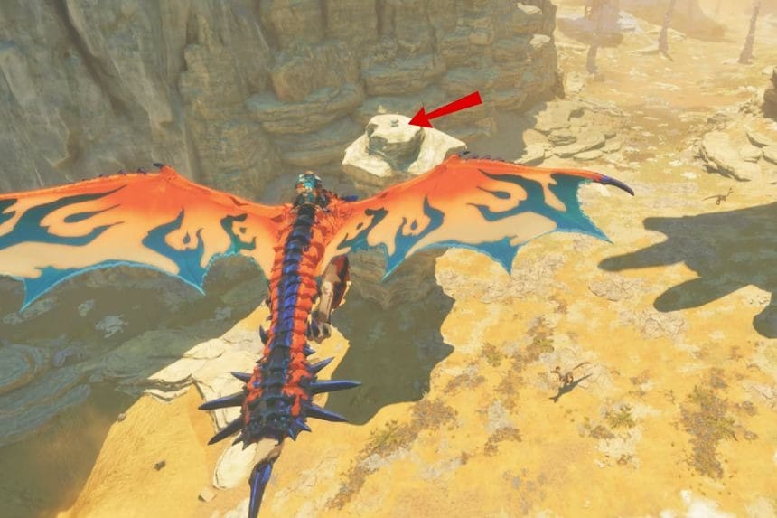 Troverai questo Poogie direttamente a nord del drago cristallizzato in Bountiful Dunes, seduto in cima a un alto pilastro.