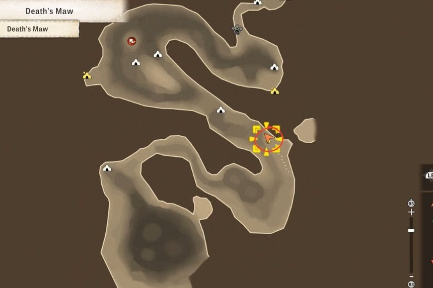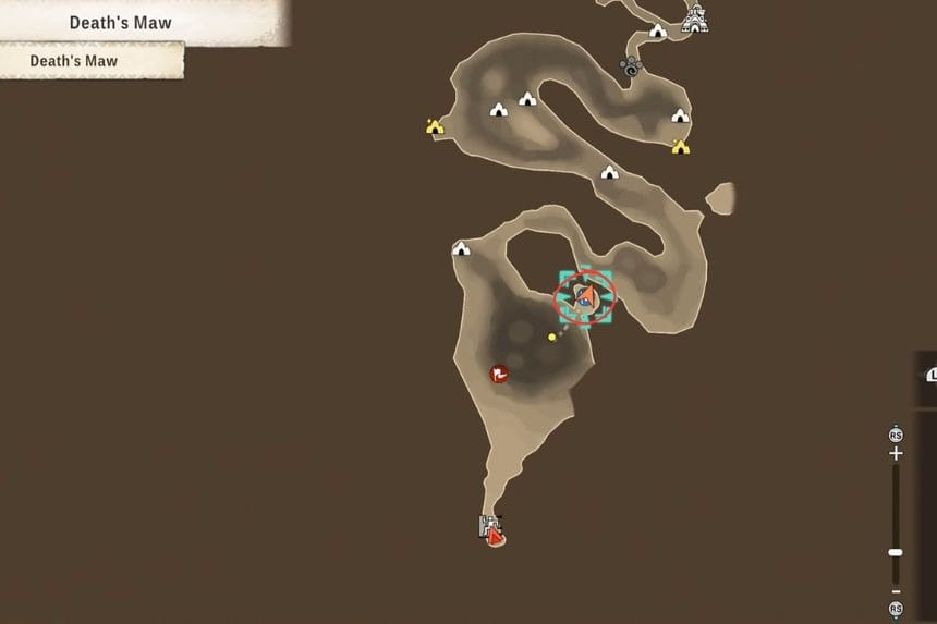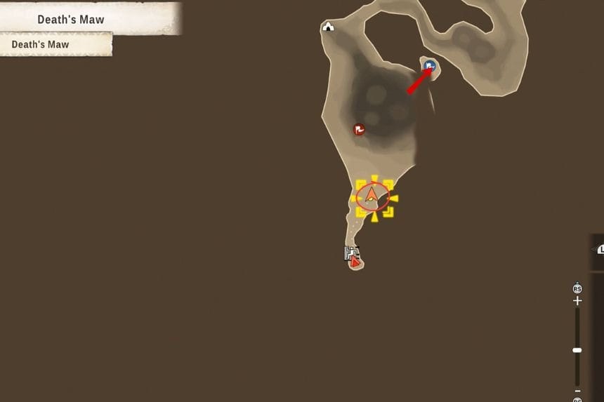 Per ottenere il terzo e ultimo Poogie nelle Fauci della Morte, dovrai seguire il percorso che porta alla Tana del Mostro. Inizia dalla posizione contrassegnata e segui il percorso a sinistra. Tieni gli occhi aperti per il Poogie perché lo troverai in cima a una delle vette.