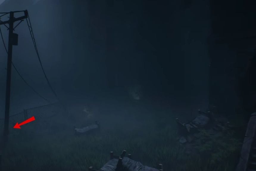 Quando raggiungi i binari del treno, oltre l’enorme burrone, cammina verso nord finché non vedi due sedie con un corpo seduto sopra. Guarda il muro tra le sedie per trovare il poster.