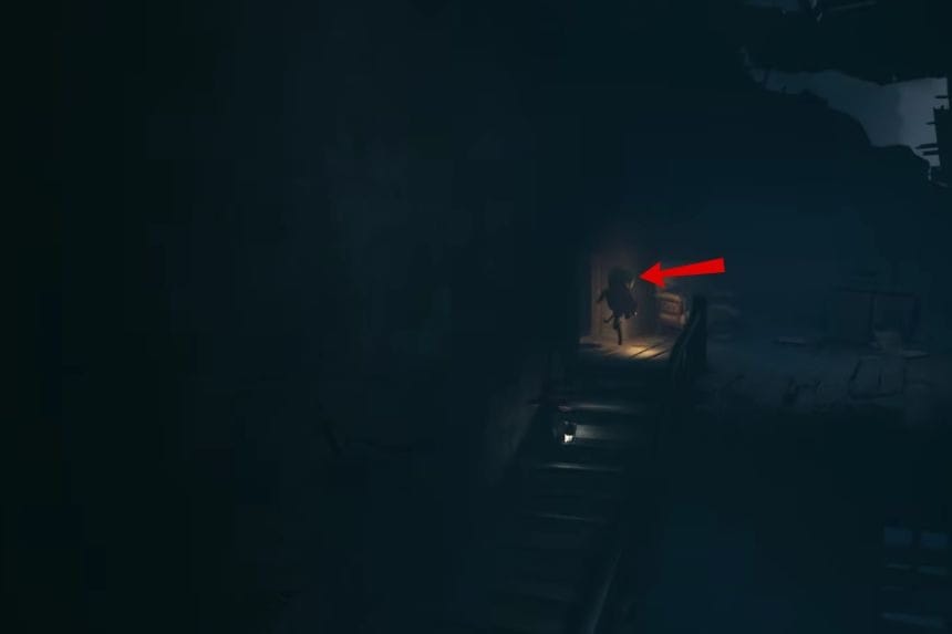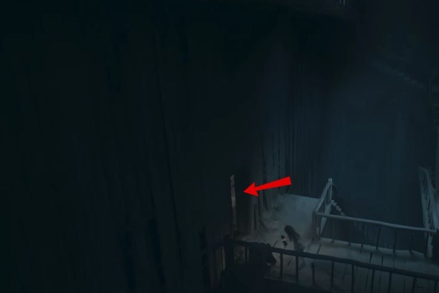 Dopo aver raccolto il poster sopra, lascia la stanza e muoviti a destra evitando il cecchino. Quando vedi le scale e un cassetto, gira intorno al cassetto sul lato destro. Troverai un poster nascosto sul muro sotto le scale.