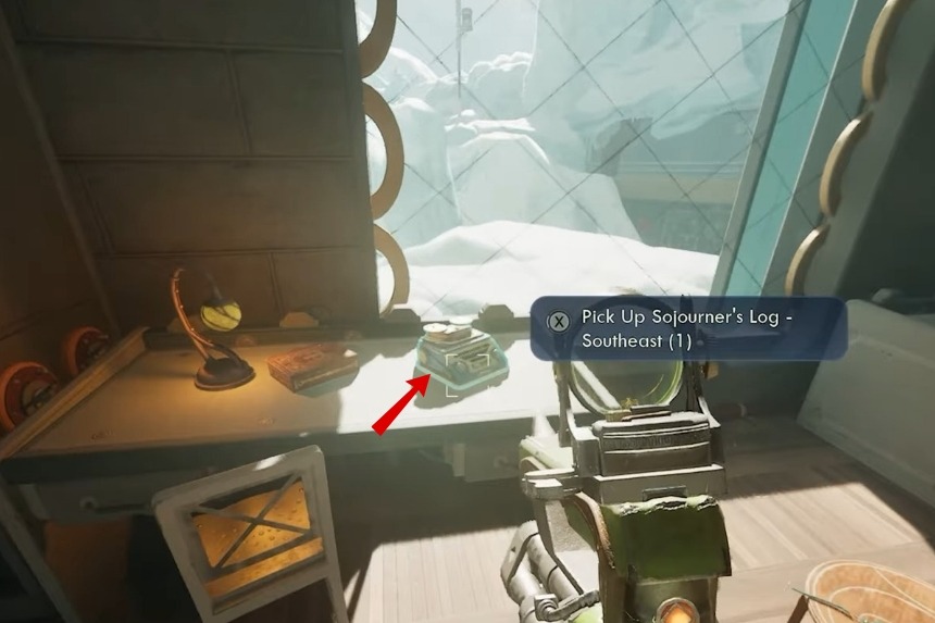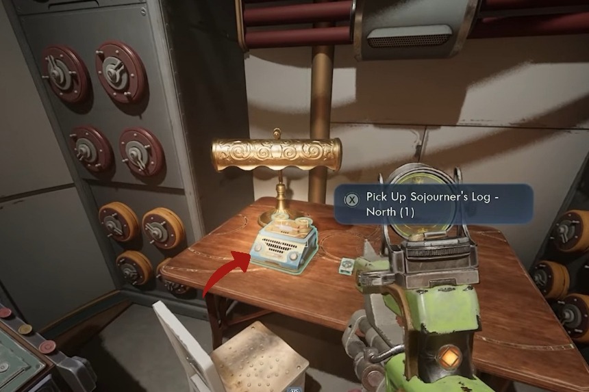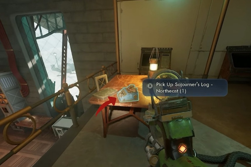 Per il diario del soggiorno Nord: viaggia velocemente verso il lato settentrionale della mappa. Lo troverai all’interno di una delle strutture vicino all’enorme macchinario. Entra, sali la scala di fronte e troverai il registro su un tavolo.