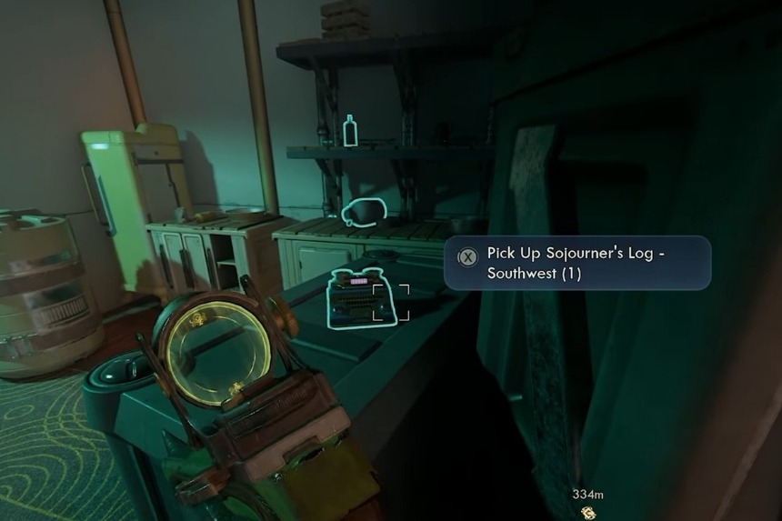 Per il diario del soggiorno, sud-ovest: viaggia velocemente verso la parte sud-ovest della mappa. Troverai il registro audio all’interno della struttura dal tetto blu, seduto su una scatola nera.
