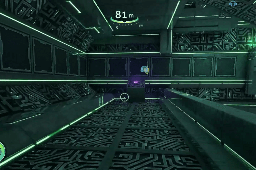 - Muoviti verso l’alto attorno alla struttura finché non individui un ingresso sigillato con un campo di forza.