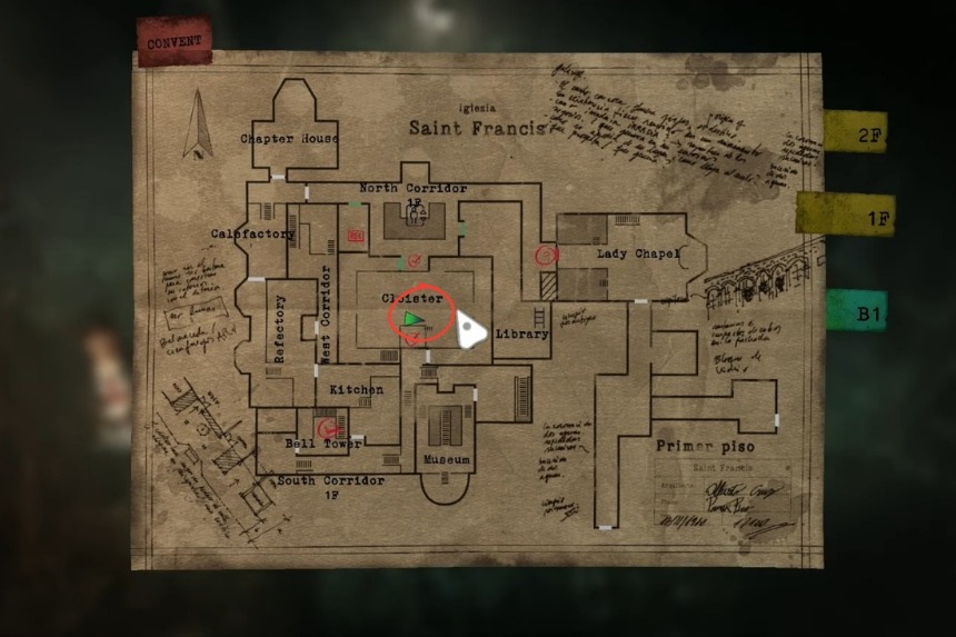 Per ottenere il Diario 1 di Sorella Miriam, dovrai dirigerti verso il Convento e lo troverai su un tavolo vicino alla porta. Questa porta ti conduce direttamente al corridoio sud 1F.
