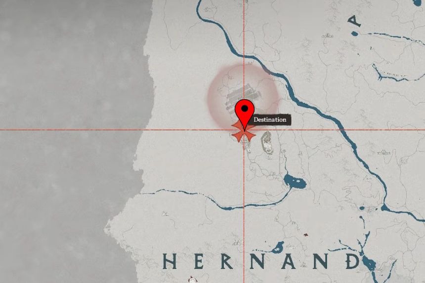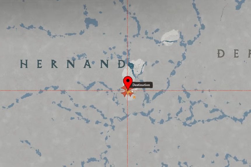 Entra nella città di Hernand e cerca il campanile della chiesa a sud della riva. Una volta raggiunta l’area, il campanile sarà proprio di fronte a te. È presente sul lato sinistro del grande albero sulla tua mappa.
