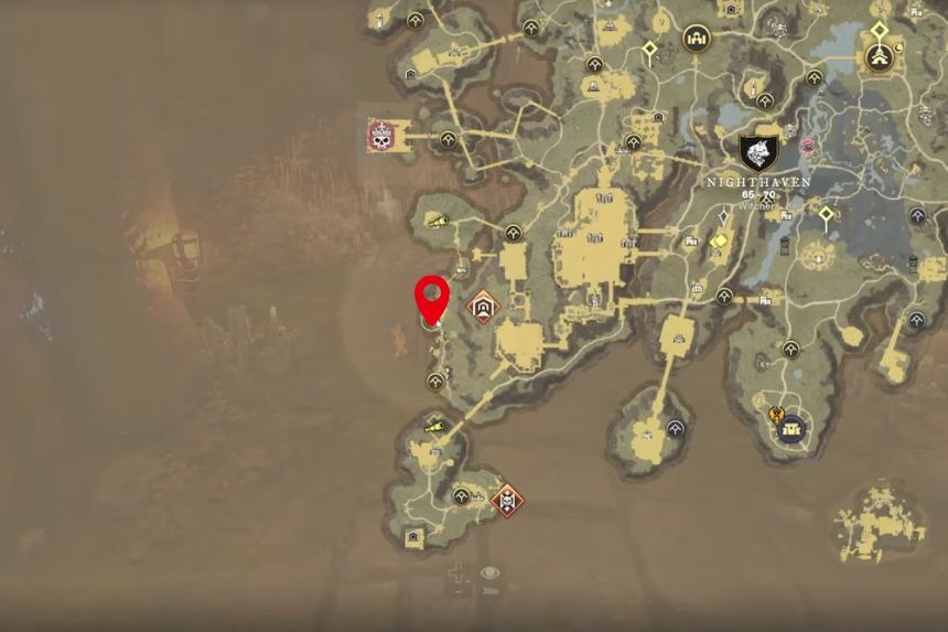 Partendo dalla Chiesa della Coppa e spostandosi verso nord-est. Sali sulla sporgenza rocciosa e cerca una porta che conduca al piano inferiore fino al santuario. Ăˆ lì che è nascosta la carta.