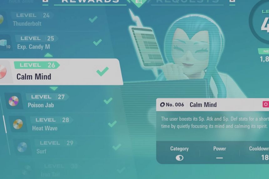 Calmamente aiuta i tuoi Pokémon a concentrarsi tranquillamente, aumentando sia l’attacco speciale che la difesa speciale. Puoi sbloccarlo da Mable una volta raggiunto il livello di ricerca 26.
