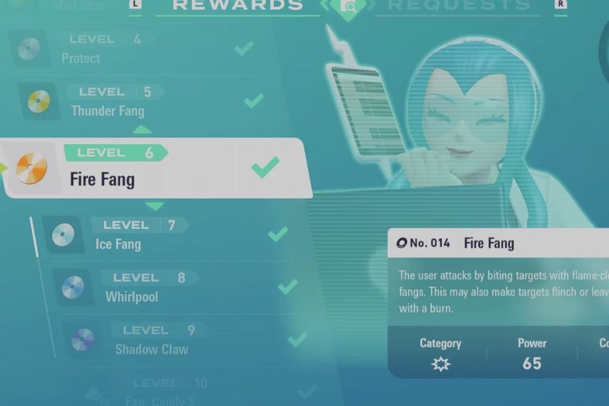 Questa mossa consente ai tuoi Pokémon di mordere con zanne infuocate, che potrebbero far sussultare o bruciare il bersaglio. Puoi ottenerlo da Mable una volta raggiunto il livello di ricerca 6.