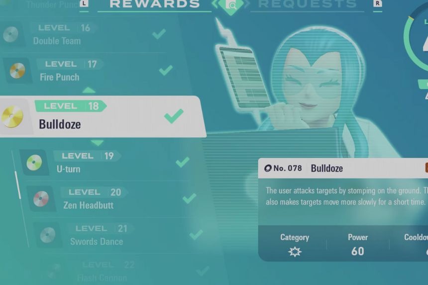 Bulldoze, è una mossa di tipo Terra in cui il tuo Pokémon sbatte il terreno per colpire i nemici vicini. Non si limita a infliggere danni, ma li rallenta anche per un po’, dandoti un vantaggio in battaglia. Puoi ottenere questa TM una volta raggiunto il livello di ricerca 18 con Mable.