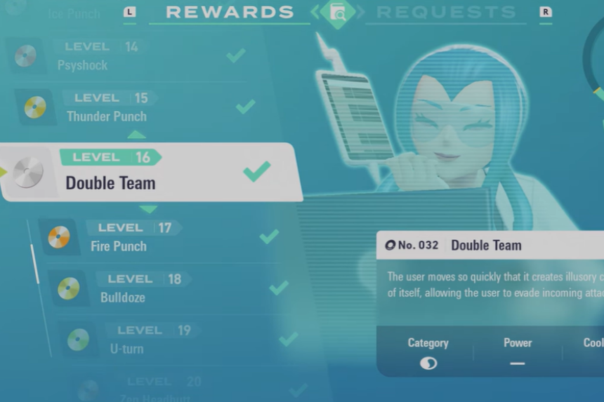 Double Team è una mossa di tipo Normale in cui il tuo Pokémon si muove così velocemente da creare diverse immagini residue di se stesso. Queste illusioni rendono più difficile per i nemici mettere a segno un colpo. Puoi sbloccare questa TM una volta raggiunto il livello di ricerca 16 con Mable.