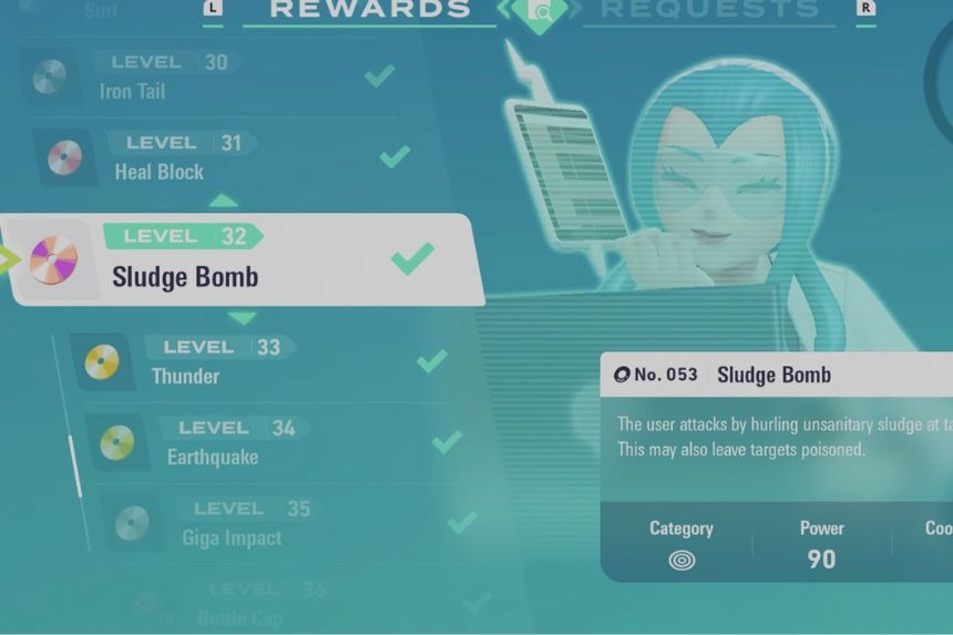 Fangobomba è una mossa di tipo Veleno in cui il tuo Pokémon lancia una brutta massa di fango sul bersaglio. Oltre a infliggere danni, ha anche la possibilità di avvelenare l’avversario. Puoi sbloccare questa TM dopo aver raggiunto il livello di ricerca 32 con Mable.