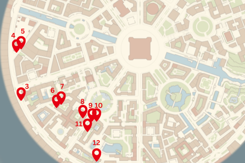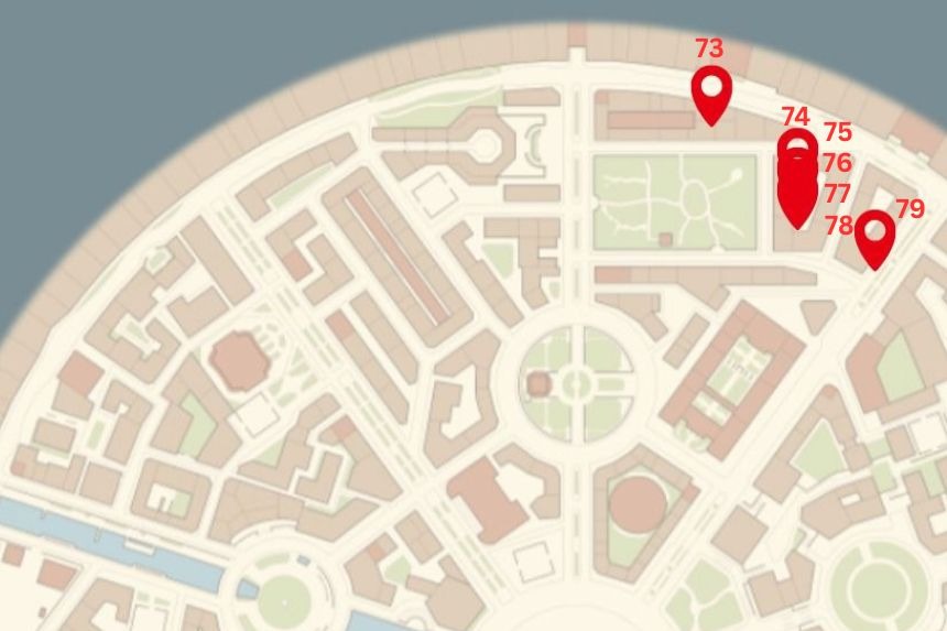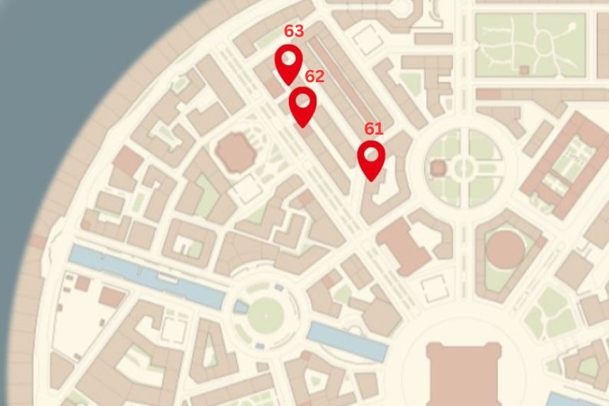 Diverse viti tra i numeri 3 e 12 sono sparse sui tetti e su terreni più elevati. Tieni d’occhio scale, piattaforme e percorsi sopraelevati mentre esplori, la maggior parte di questi sono facili da raggiungere una volta notati i percorsi scalabili.