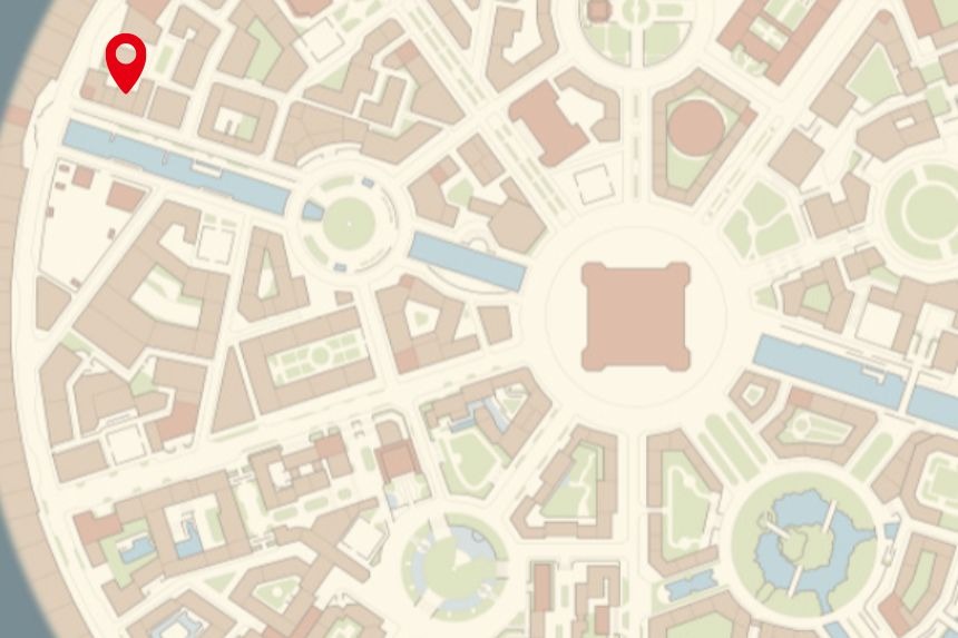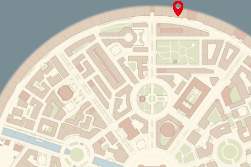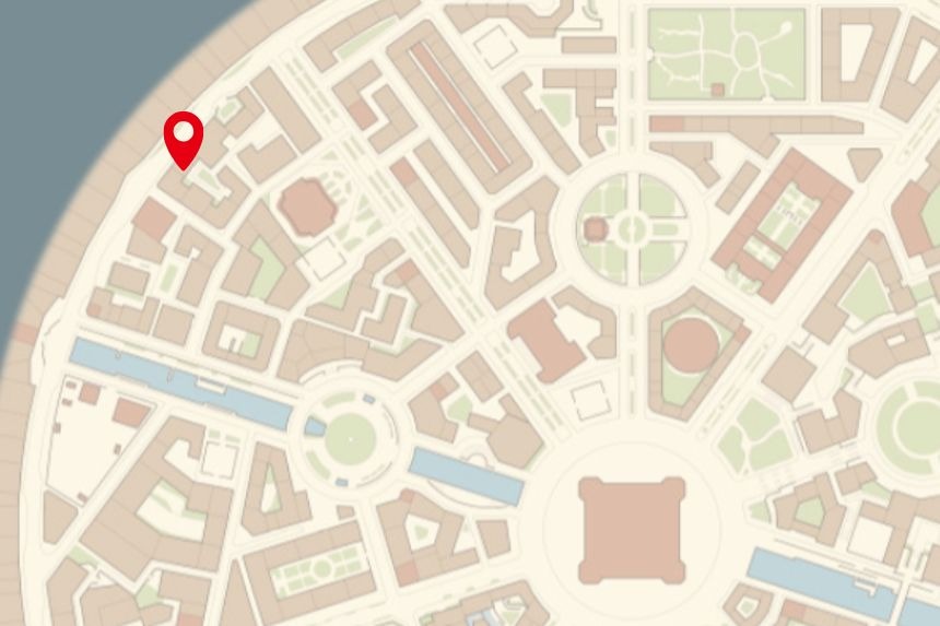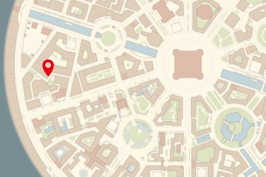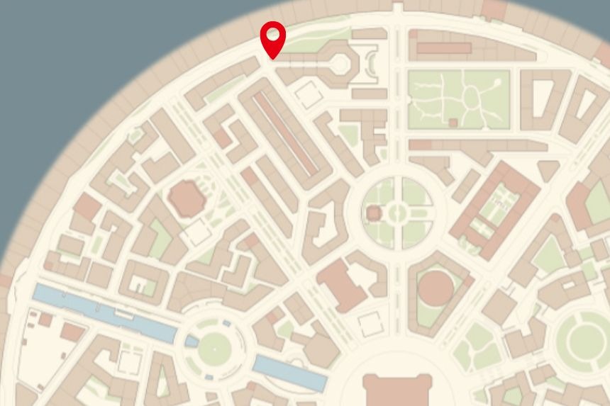Inizia prendendo l’Holovator nel cortile per raggiungere il punto più alto dell’edificio a nord-ovest. Rotola oltre il varco fino all’edificio dall’altra parte della strada, quindi scendi sul tetto verde alla tua sinistra.