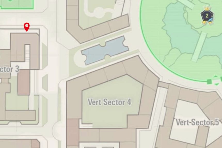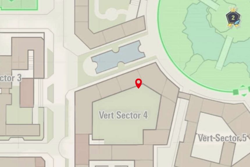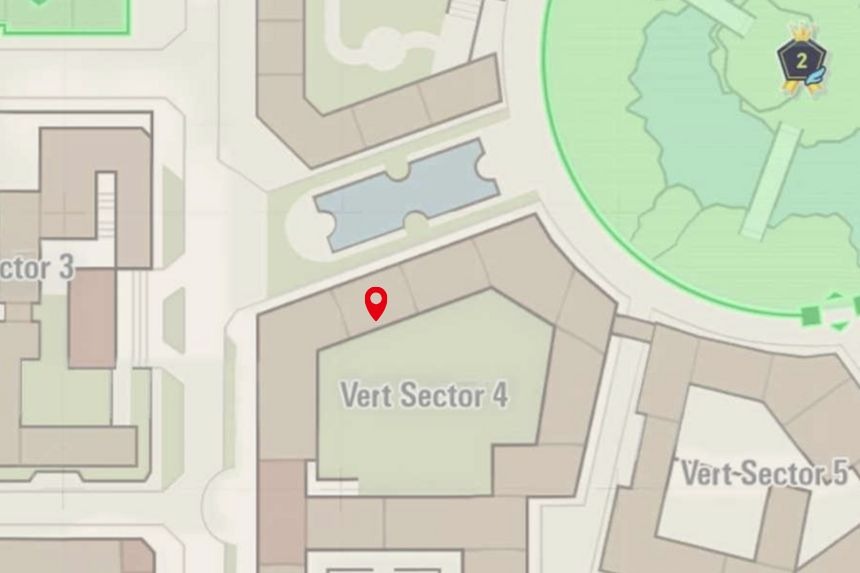 Dirigiti verso l’edificio a nord del settore Vert 2 e sali la scala lì. Una volta in cima, spostati a sud e rotola oltre il burrone per raggiungere il tetto a sud, dove ti aspetta la vite.