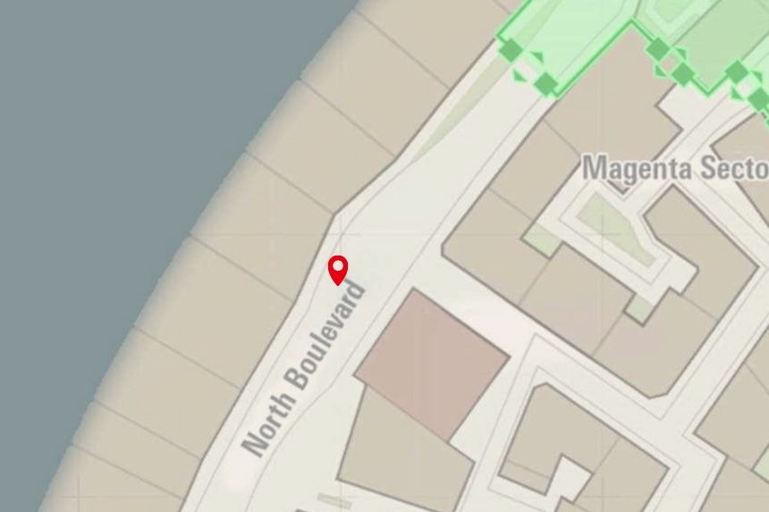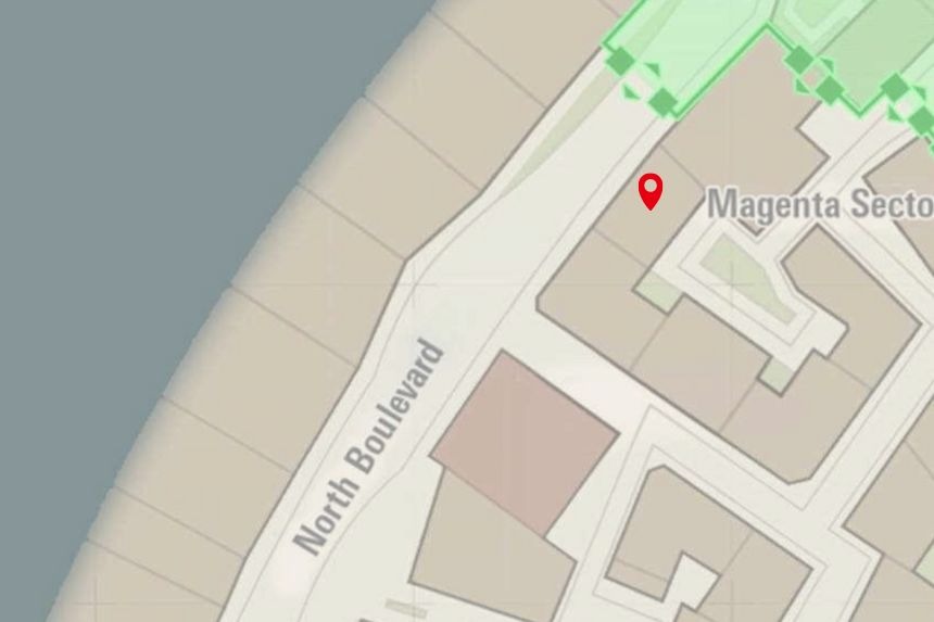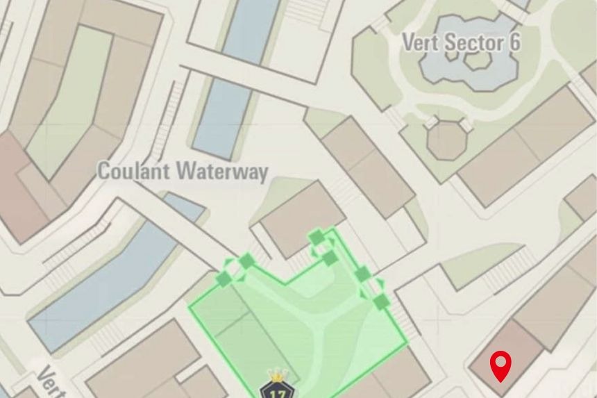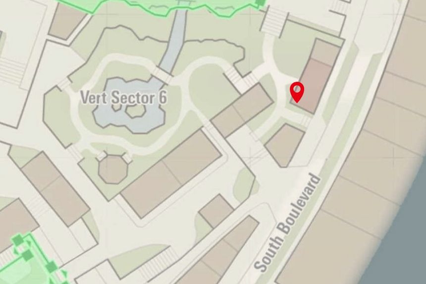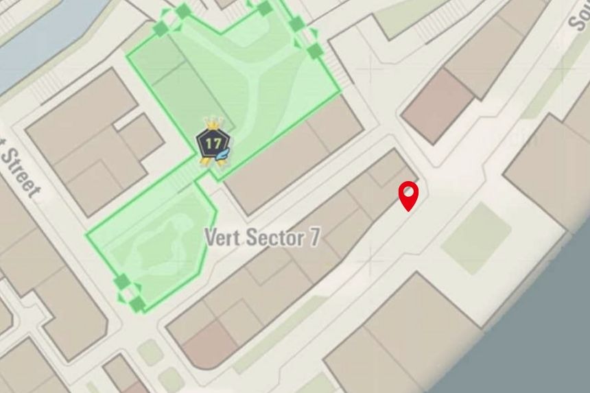 Inizia prendendo l’Holovator nel cortile per raggiungere il punto piĂ¹ alto dell’edificio a nord-ovest. Rotola oltre il varco fino all’edificio dall’altra parte della strada, quindi scendi sul tetto verde alla tua sinistra.