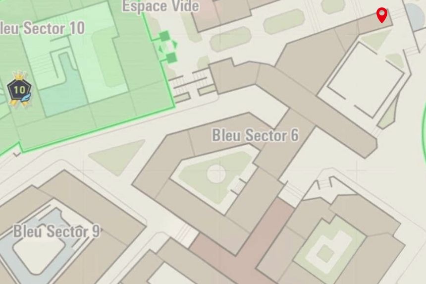 Dirigiti verso il lato est del settore Bleu 6 e usa le impalcature per salire in cima alla galleria commerciale. La vite si trova nell’angolo orientale del tetto.