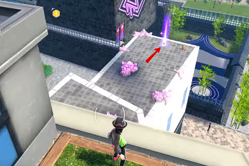 Inizia dall’area del cortile e cerca una scala che porta al tetto. Sali per trovare questa vite colorata che ti aspetta lassĂ¹.