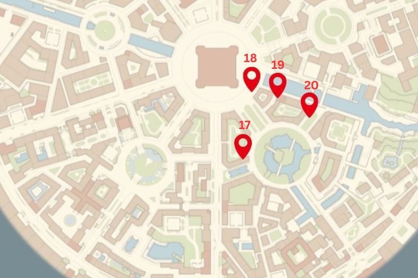 Diverse viti tra i numeri 17 e 20 sono sparse sui tetti e su terreni più elevati. Tieni d’occhio scale, piattaforme e percorsi sopraelevati mentre esplori, la maggior parte di questi sono facili da raggiungere una volta notati i percorsi scalabili.