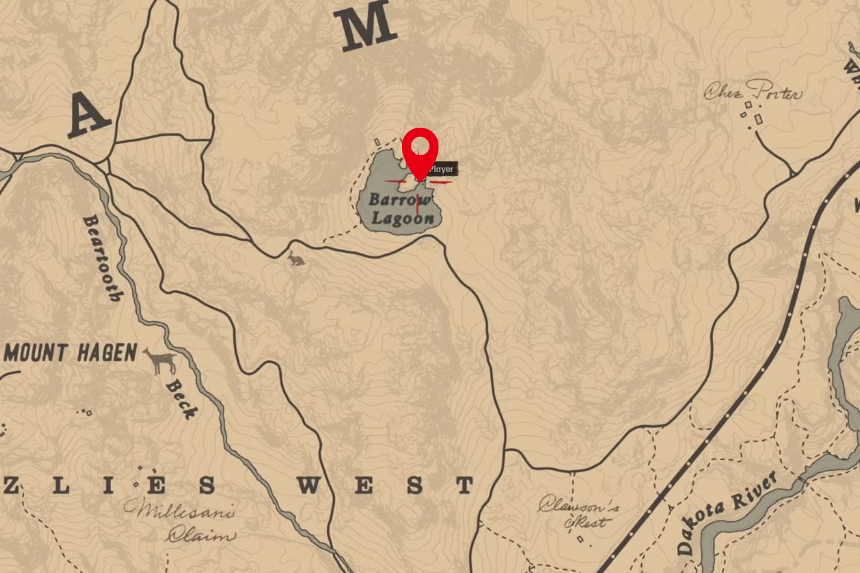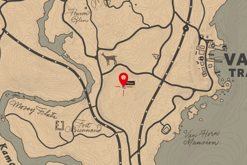 Successivamente, vai a sud del Van Horn Trading Post. Cerca un tumulo roccioso tra Fort Brennard e Van Horn Mansion. Il tesoro è proprio nel mezzo. All’interno troverai il braccialetto primaverile di platino, la mappa The Poisonous Trail 3.