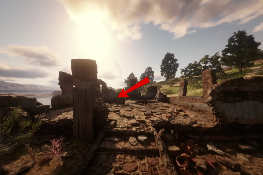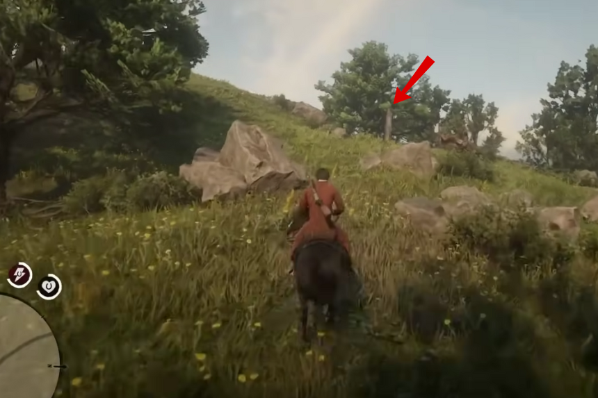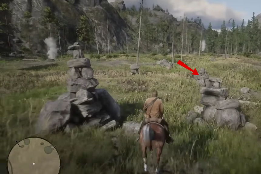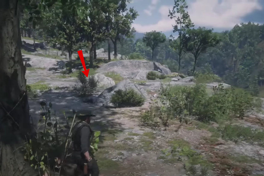 Per risolverlo, vai a Face Rock a Scarlett Meadows (a nord di Rodi) e cerca il ceppo di albero morto accanto a due alberi caduti. All’interno troverai $ 10, The Poisonous Trail Map 2.