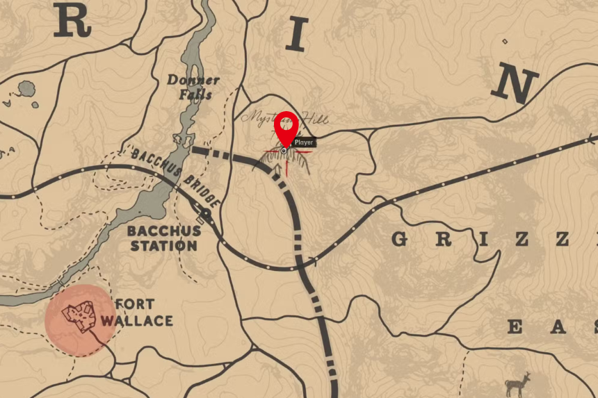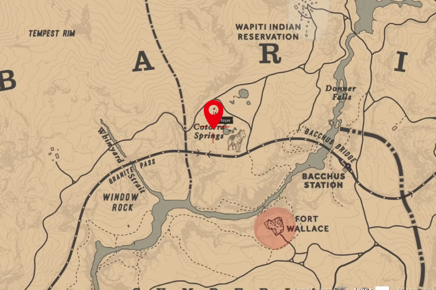 Una volta ottenuta la mappa 2, dirigiti a Cotorra Springs, a nord di Fort Wallace. Cerca una grande roccia al centro di un anello di rocce piĂ¹ piccole. All’interno troverai la Jack Hall Gang Map 3 da $ 15.