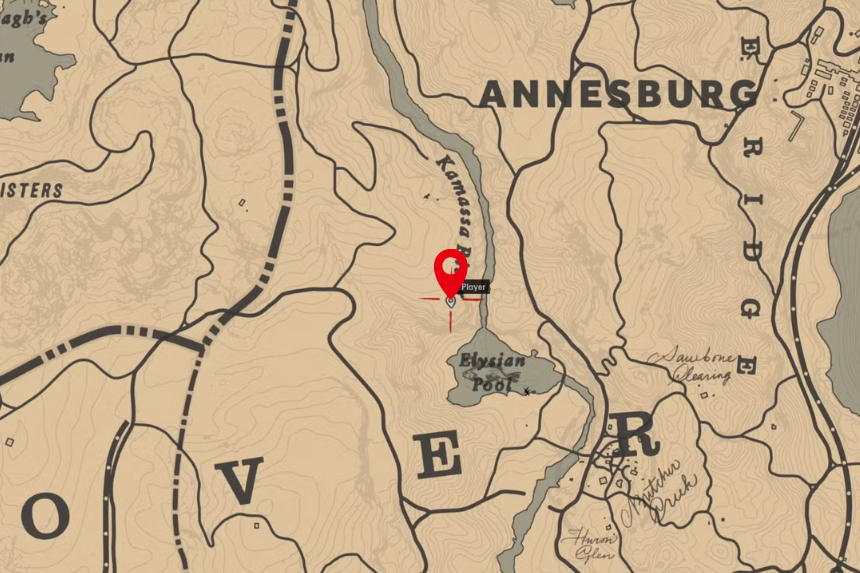 Per il tesoro finale, dirigiti all’Elysian Pool a Roanoke Ridge e vai dietro la cascata nella grotta. Ăˆ buio, quindi porta una lanterna. All’interno, seguire il tunnel verso l’alto, al bivio prendere la strada a destra, poi subito a sinistra. Continuate a seguire il sentiero sul lato sinistro fino a raggiungere un dislivello. Saltate sul lato sinistro, proseguite piĂ¹ in profonditĂ e infine scendete in una piccola pozza d’acqua. Sali da lì per raggiungere un mucchio di rocce contenente il tesoro. All’interno troverai i 4 lingotti d’oro.