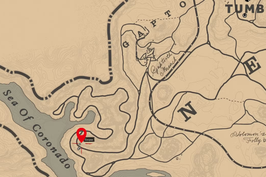 Nell’epilogo, vai all’angolo sud-ovest di New Austin. Troverai un uomo appeso a una corda, abbattilo e saccheggia la mappa.