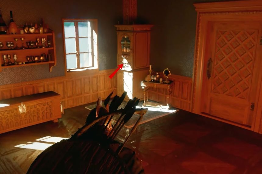 Da quella stanza, scendi le scale e apri la prima stanza nel corridoio sul lato destro per trovare un’altra cassa vicino al letto che contiene i guanti a piastre del guardiano d’ottone.