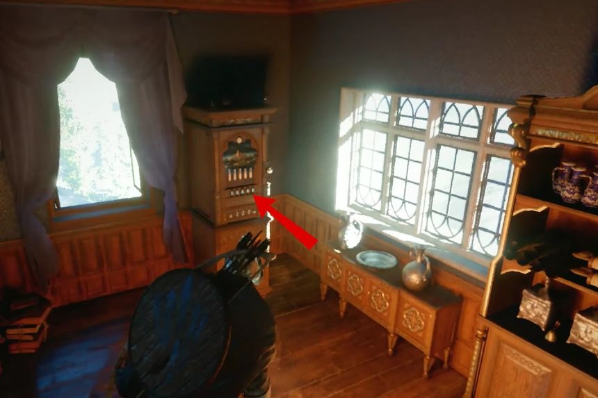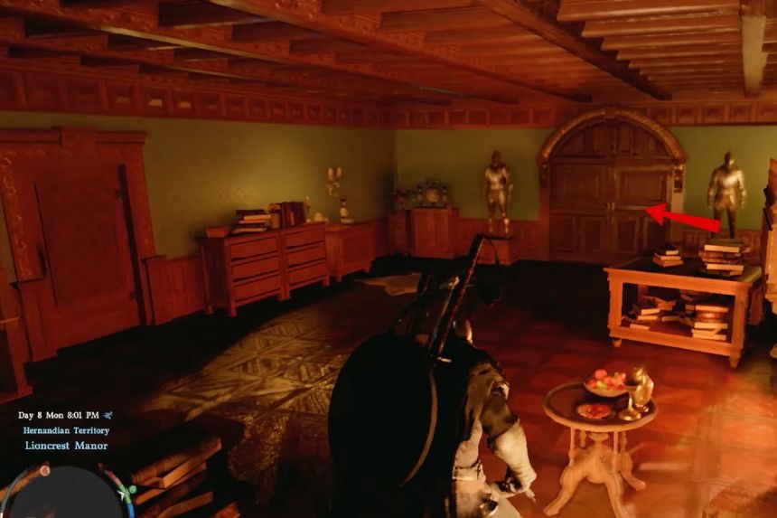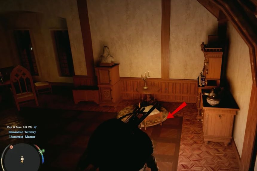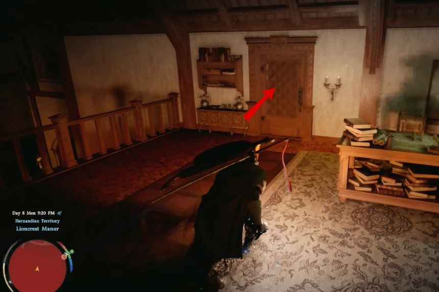 Per ottenere gli orecchini d’oro finemente lavorati, vai al Lioncrest Manor. Dirigiti verso il lato posteriore del maniero, vicino al recinto, per entrare nell’edificio dalla finestra centrale. Quando entri nell’edificio, apri la porta sul lato sinistro, vicino alla libreria, per trovare un puzzle dipinto.