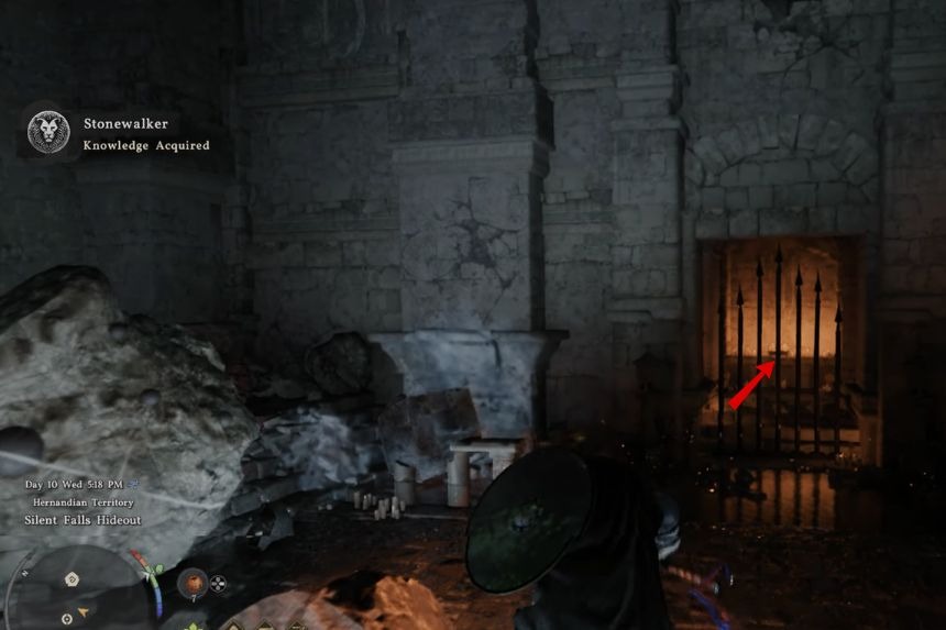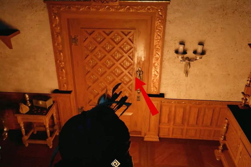 Nel Lioncrest Manor, entra nell’edificio dal centro della finestra. Una volta dentro, apri la grande porta di fronte a te. Quindi vai avanti per rubare una chiave vicino a un tavolo da tè. Ora, sul lato sinistro sbloccherai la porta con la chiave per trovare il grande scudo di Rhonid.