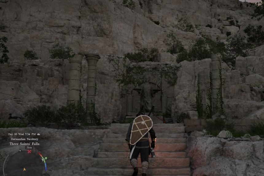 Per ottenere la spada Gladius del legionario, vai a nord del castello di Hernand fino a raggiungere un grande ponte. Da lì, prosegui lungo la cima delle scogliere vicino alla base delle Three Saints’ Falls. Muovendoti lungo il lato destro delle scogliere, troverai una Statua della Giustizia. Interagisci con esso per accendere entrambe le candele che tiene in mano. Dopo aver acceso entrambe le candele, si aprirà un cancello. Attraversalo, apri uno scrigno del tesoro all’interno e raccogli la tua ricompensa.