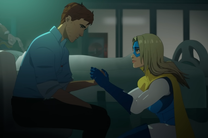 L’episodio si conclude con Robert e Blond Blazer seduti su un cartellone pubblicitario. Ti chiederĂ perchĂ© Invisigal non ti ha parlato dell’impulso astrale.