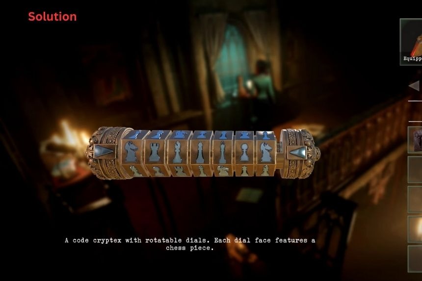 Esamina il Cryptex e risolvi il puzzle dei pezzi degli scacchi. Posiziona il pezzo degli scacchi nell’ordine corretto.