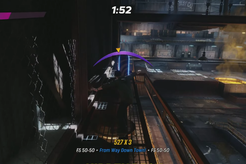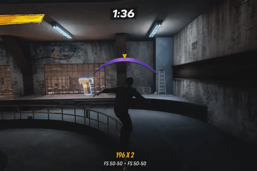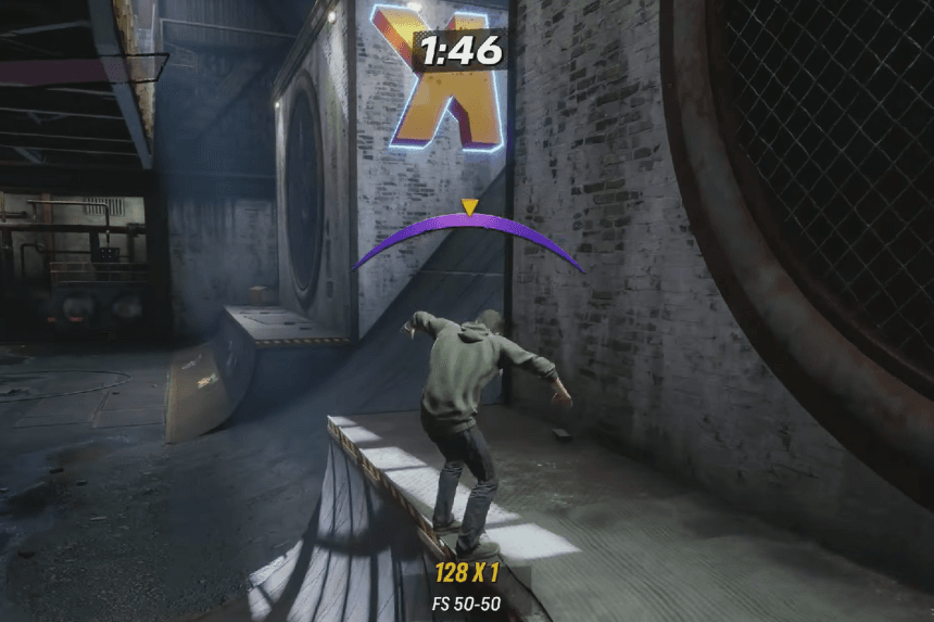 Inizi in un’ottima posizione per completare questo obiettivo in Foundry, ma potresti aver bisogno di un po’ più di velocità per colmare il divario. Prima di scendere dalla rampa, girati e sali sull’half-pipe dietro di te per acquisire slancio. Una volta tornato giù, scendi dritto lungo la rampa principale e, mentre salti sull’half-pipe, premi Destra + Cerchio (o Destra + B) per eseguire una presa Indie.